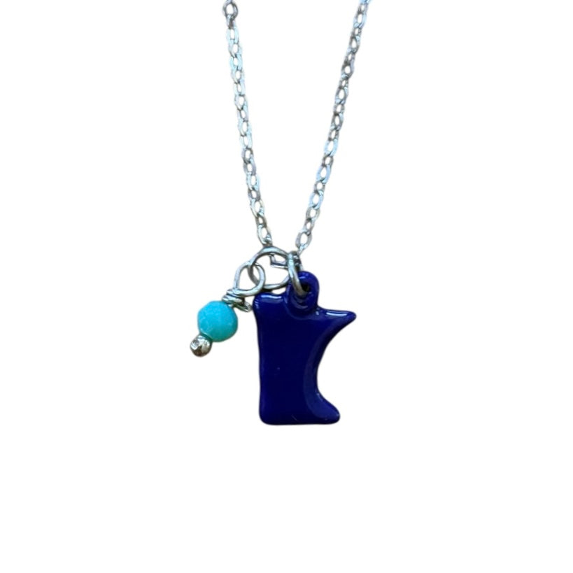 Tiny enamel Minnesota charm with bead accent.